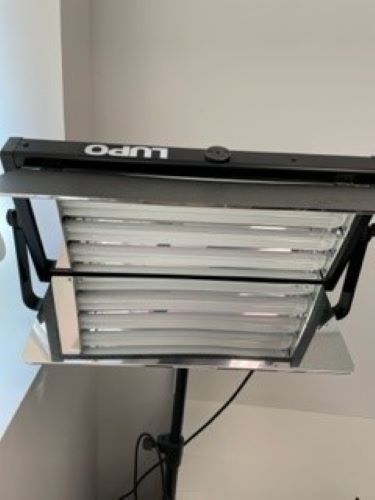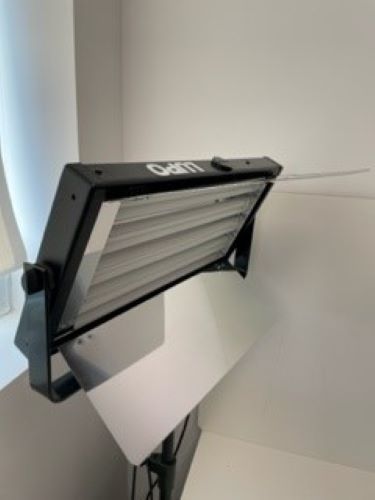 Built in dimmer, 4X55W (5400°K or 3200°K) lamps, complete with barns and yoke