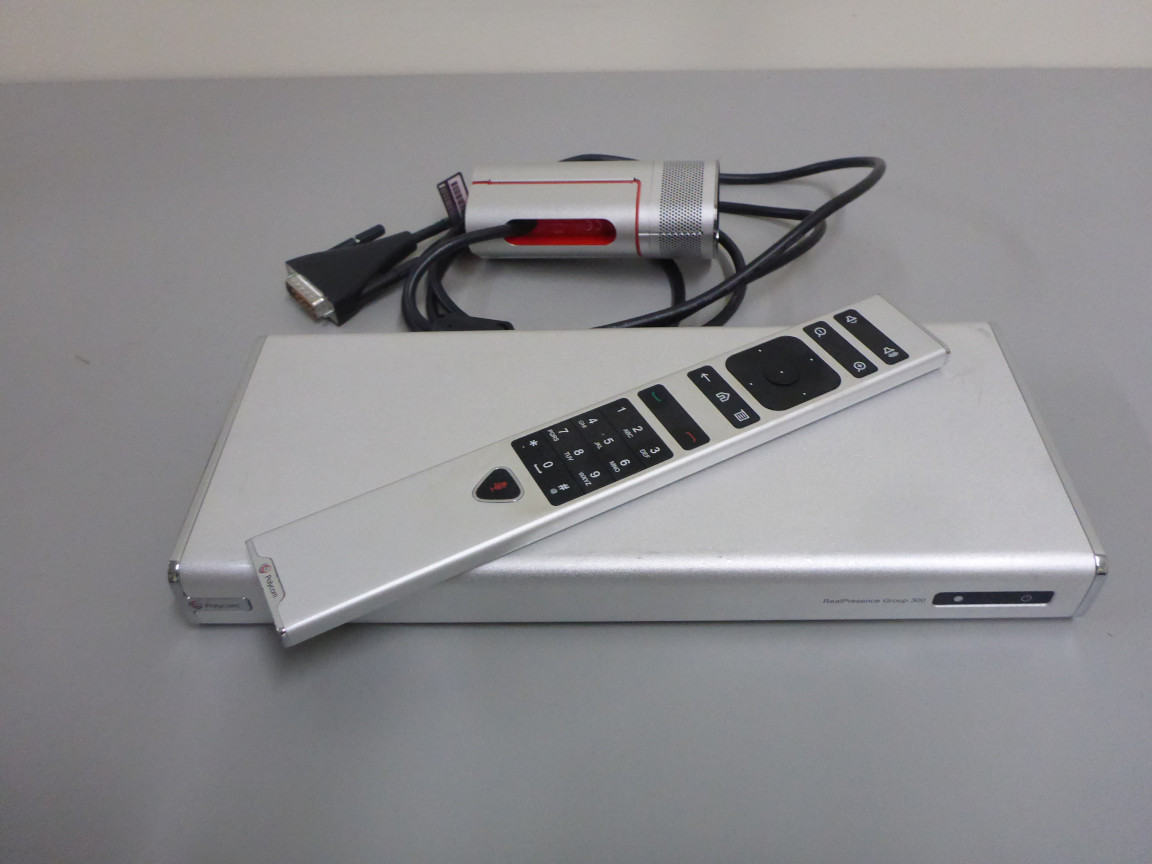 nREALPRESENCE GROUP 300-720PRealPresence Group 300 – 720p: Group 300 HD codec, EagleEye Acoustic cam., univ. remote, NTSC/PAL. Cables: 1 HDMI 1.8m, 1 CAT 5E LAN 3.6m, Power: AMER – Type B, NEMA 5-15. Maintenance Contract Required.